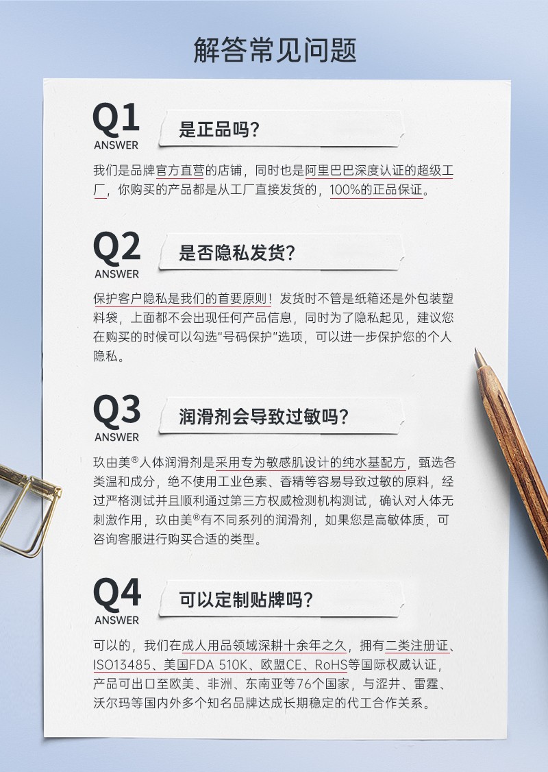 嚴(yán)格按照GMP生產(chǎn)規(guī)范!生產(chǎn)前原材料檢測(cè),確保原料合格。生產(chǎn)中半成品檢測(cè),確保生產(chǎn)過(guò)程無(wú)污染。生產(chǎn)后產(chǎn)品檢測(cè)并且出具出廠檢測(cè)報(bào)告,確保產(chǎn)品符合標(biāo)準(zhǔn),從原料到成品層層把關(guān),確保每一件均為精品。仿生體驗(yàn),與人體愛(ài)液無(wú)異